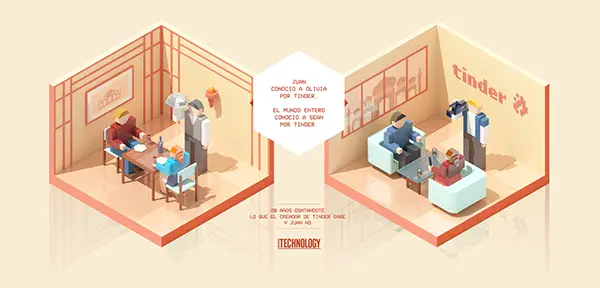 The premise: compare two situations with a simple aesthetic that refer to pixelart and low poly.